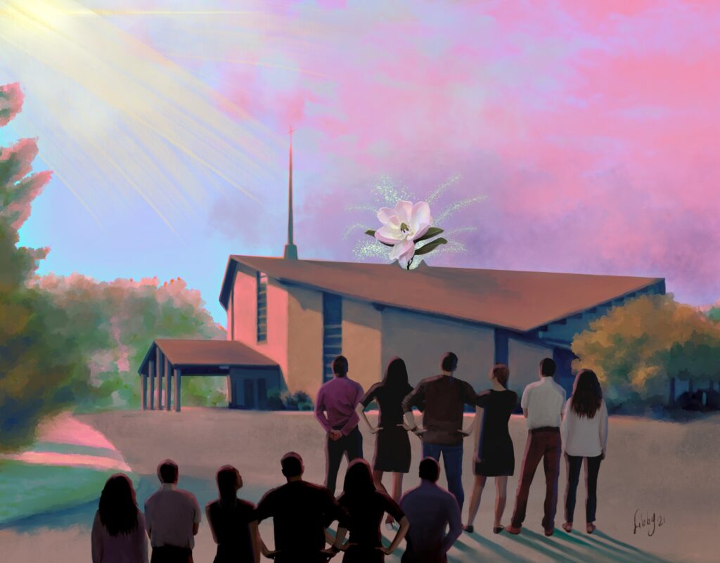 I looked and saw another little flower, another magnolia bud. There is nothing sweeter than magnolia buds. You can smell their fragrance for blocks around. I believe people are going to be able to smell this tree too. It is going to give forth a sweet smell. I looked and I saw another bud begin to burst and do you know what word I saw written above it? Peace. PEACE. And I said, “Dear Lord, in all the years I have known you, I have never had the peace I have right here today. I have the greatest peace in my soul I have ever had.” I feel God on the face of the earth.